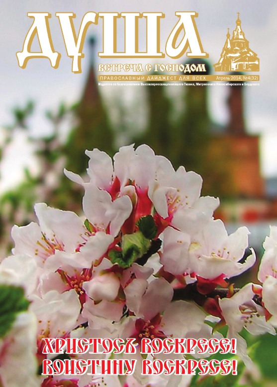 В Хабаровскую епархию поступил апрельский номер ежемесячного дайджеста (сборника) "Душа - встреча с Господом". В номере: Светлая Пасха Христова; Учиться любить; Профессор А. И. Осипов: «Я скептик, вы учтите»; Царство блаженных; Доброе утро, Винни Пух. Если оно вообще доброе ...; Не от мира сего, но здесь и сейчас; Гражданства нам Небесного; Осторожно, свобода! Брак – это нежный цветок.