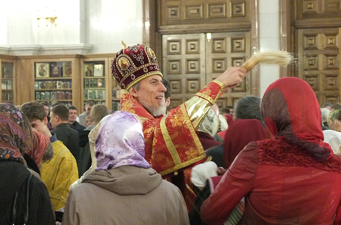 В эту пасхальную ночь сотни хабаровчан пришли в главный храм города, чтобы разделить радость о воскресшем Христе. На богослужении присутствовал и губернатор Хабаровского края В.И. Шпорт с супругой.