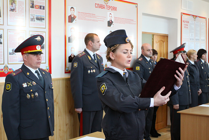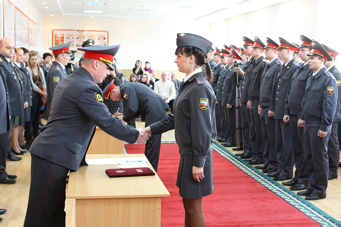 Присягая на верность Родине, выпускники произносят слова клятвы: соблюдать Конституцию и законы РФ, достойно переносить связанные со службой в органах внутренних дел трудности, быть честным, мужественным, бдительным сотрудником, хранить государственную и служебную тайну, не щадя своей жизни, охранять правовой порядок. Осмысленно исполнить и доказать жизнью и служением истинность этих слов, по словам Андрея Федоровича, теперь предстоит выпускникам.