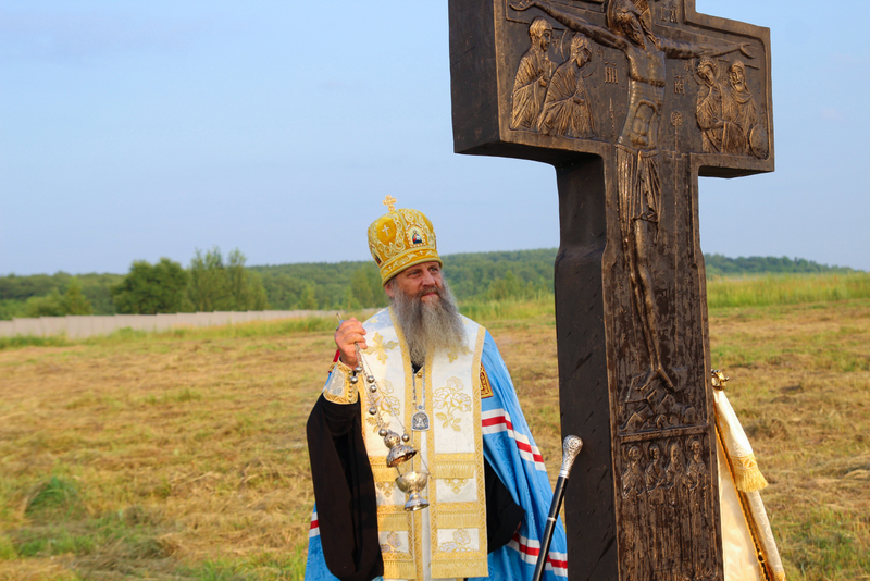 После освящения креста владыка обратился к собравшимся с проповедью:
