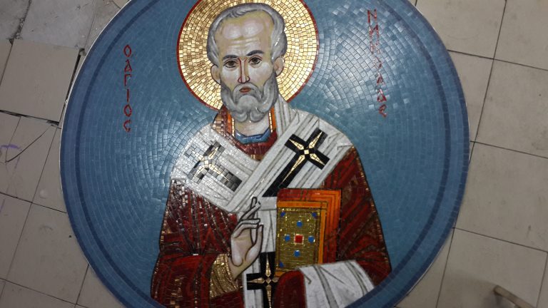 Храм святителя Николая в городе Вяземский украсит мозаичная икона святого покровителя. В сентябре на приход прибыл надвратный образ, над которым все лето трудились мастера из Москвы.