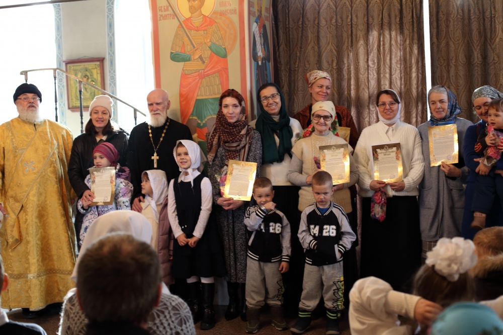 Многодетных и активных мам прихода отметил настоятель храма иерей Василий Диденко. Священник вручил им благодарственные письма и подарки.