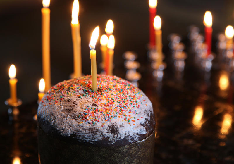 Четыре раза в этот радостный день отец Андрей освящал принесенные многочисленными прихожанами пасхальные куличи и яйца.