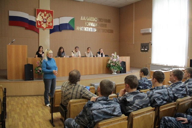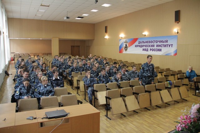 26 сентября 2012 ребята из молодежного "Круга" Преображенского братства, посещавшие Хабаровск с паломнической поездкой, приехали в Дальневосточный юридический институт МВД, чтобы встретиться со студентами 1го курса. Темы, которые возникли в ходе беседы, были серьёзными и не оставили равнодушными никого из присутствующих в актовом зале института МВД. Разговаривали о ценностях: о человеческой жизни, о достоинстве человека, о законе жизни, об уважении, о чести и морали. Как отметил один из участников встречи Антон Логойский: «Ребята живо интересовались и участвовали в разговоре, мы вместе искали ответы на эти важные вопросы. И хотя не всегда нам удавалось их найти, появилась возможность сравнить реальность, в которой мы живём, с той, в которой мы хотим жить».