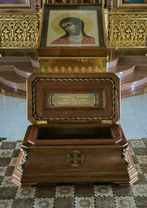Честные мощи св. Феодоры Греческой находятся на острове Корфу в соборе Божией Матери «Спилеотисса». Именно оттуда и прибудет башмачок святой Феодоры.