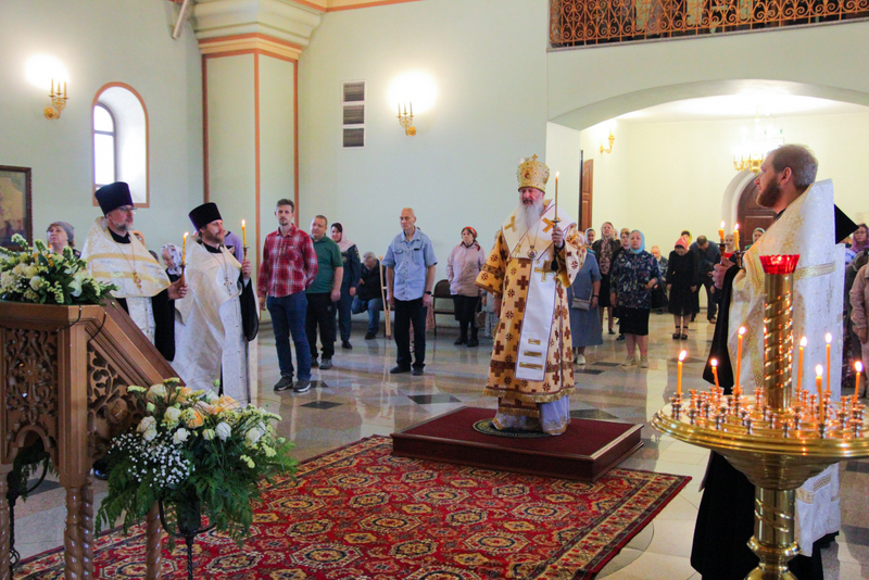 Его Высокопреосвященству сослужили: настоятель Спасо-Преображенского кафедрального собора протоиерей Георгий (Сивков), настоятель храма святого преподобного Серафима Саровского протоиерей Виталий Кудря, духовенство Серафимовского храма.
