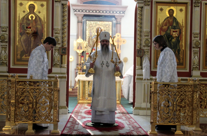 Его Высокопреосвященству сослужили: секретарь епархиального управления иеромонах Николай (Белозеров), настоятель протоиерей Спасо-Преображенского кафедрального собора Георгий Сивков, иерей Георгий Ибрагимов, иерей Валерий Астанов, иерей Алексей Шарапа.