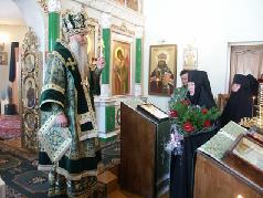 По случаю престольного праздника обитель посетил епископ Читинский и Забайкальский Евстафий, который совершил в храме Всех святых в земле Российской просиявших Божественную литургию.