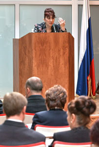 С приветственным словом к собравшимся обратилась Г.Г. Курносенок руководитель секции, член Центрального Совета «Всероссийского родительского собрания». Она представила рабочий президиум, ознакомила присутствующих с программой работы секции и предоставила слово Т.К. Ростовской д.с.н., начальнику отдела Департамента молодежной политики, воспитания и социальной защиты детей Министерства образования и науки Российской Федерации. Она рассказала о других государственных программах, ориентированных на молодежь, включающих задачи, связанные с участием молодежи в реализации национальных проектов. В заключение Т.К. Ростовская отметила, что подобные встречи дают важный материал для дальнейшей работы государственных органов и пригласила всех участников к сотрудничеству в разработке проекта закона о молодой семье.