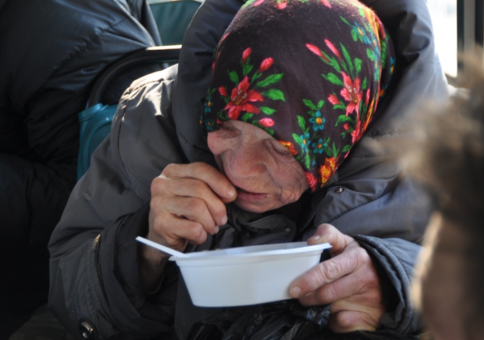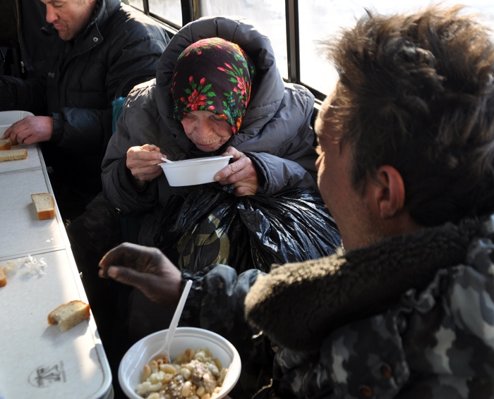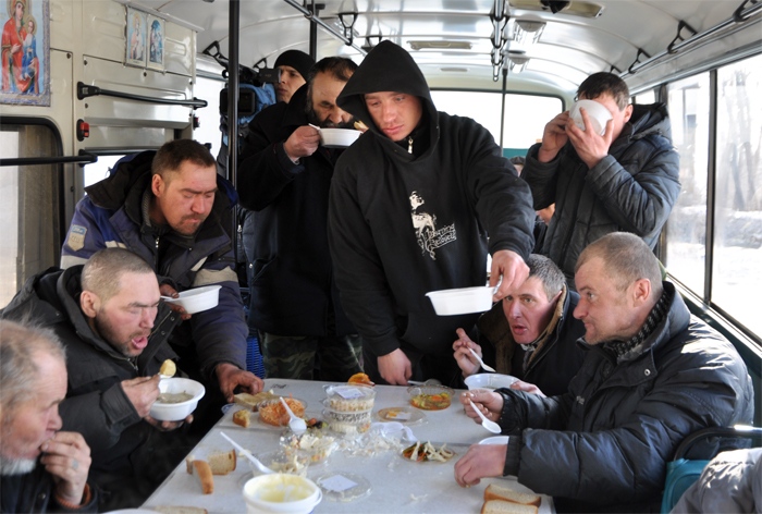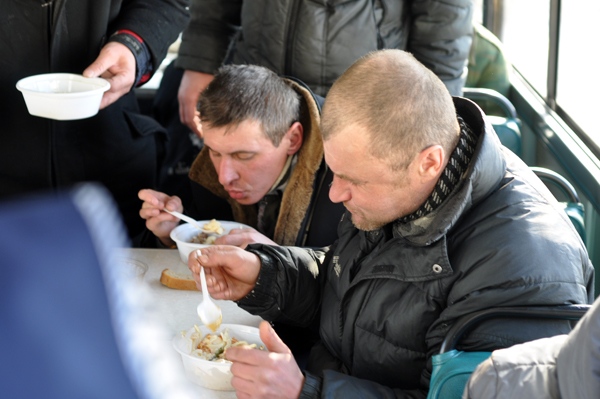 "Автобус милосердия" кормит хабаровских бездомных. 12 февраля 2013 год.