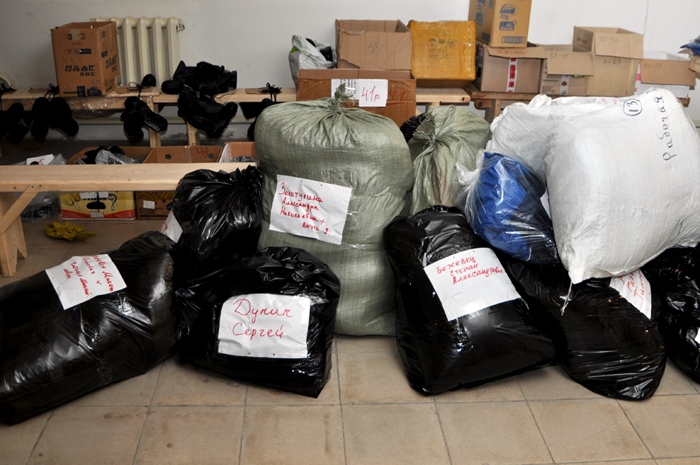 Сотрудники Хабаровской епархии доставили гумманитарную помощь в эвакуационный пункт. 12 сентября 2013 год.