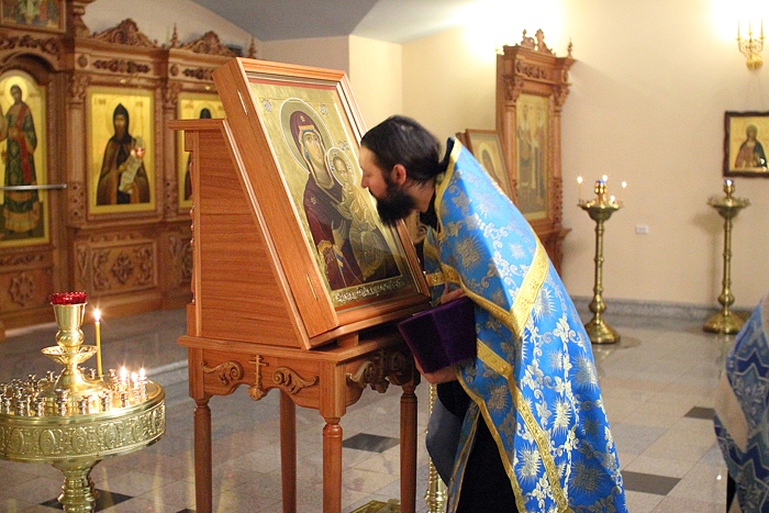Молебен перед началом автомобильного крестного хода со Смоленской иконой Божией Матери "Одигитрия". 16 ноября 2013 г.