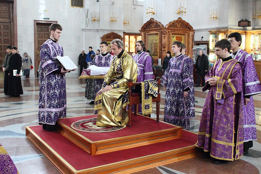 Чин умовения ног в Великий четверг. Спасо-Преображенский кафедральный собор Хабаровска. 9 апреля 2015 года