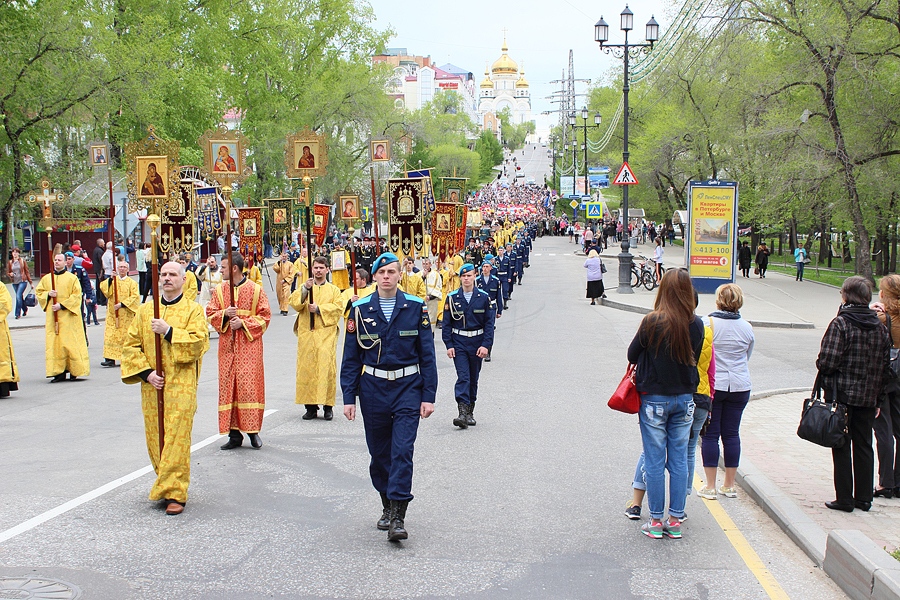 Крестный ход в день памяти святых равноапостольных Кирилла и Мефодия прошел в Хабаровске. 24 мая 2015 года