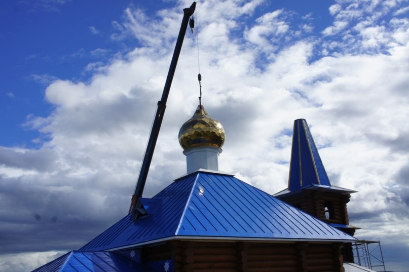 Установка куполов храма Владимирской Божией Матери с.Маяк 07.09.2015 г.