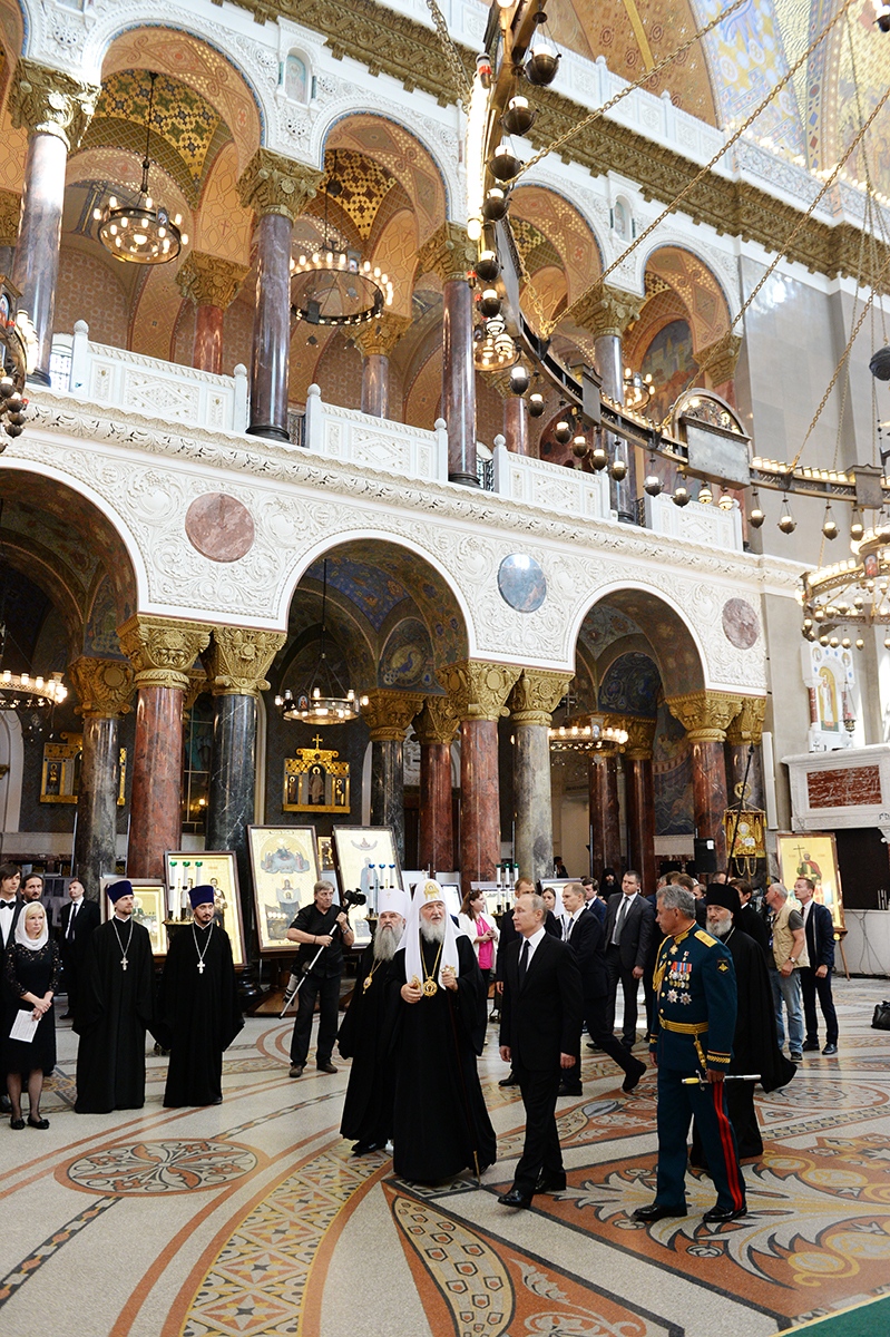 Президент России В.В. Путин посетил Никольский Морской собор в Кронштадте 30.07.2017