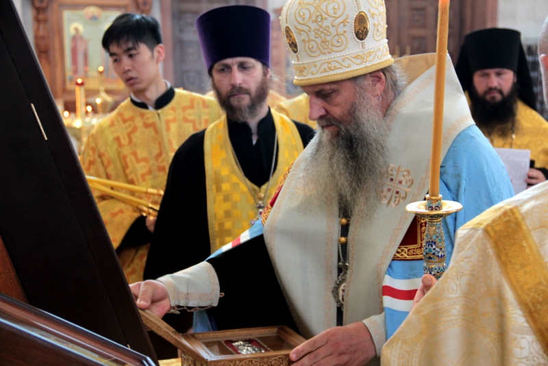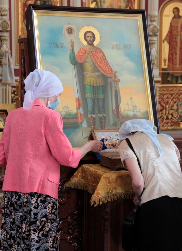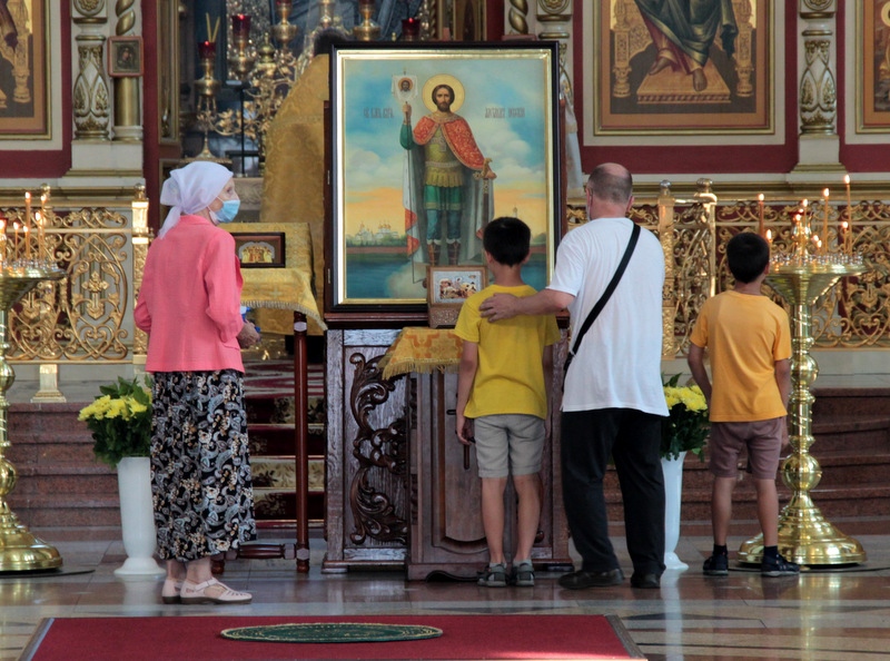 Встреча ковчега с частицей мощей святого благоверного князя Александра Невского в главном храме края. 16 июля 2021 г.