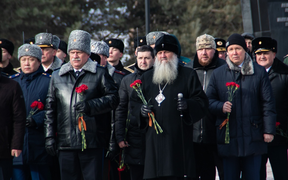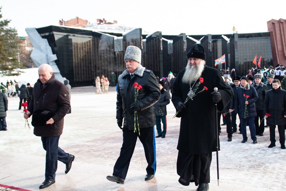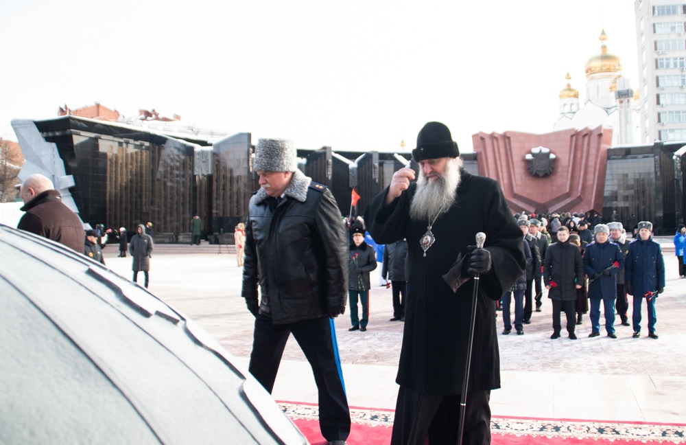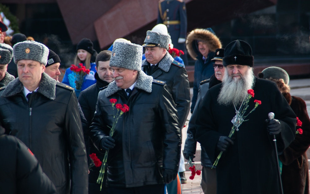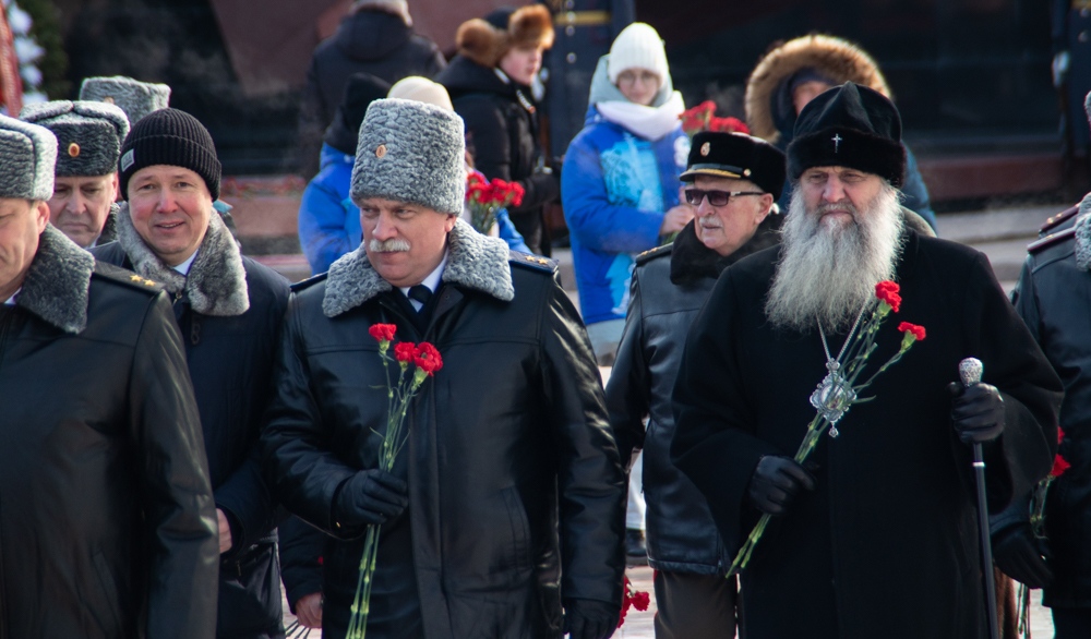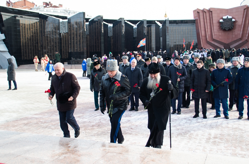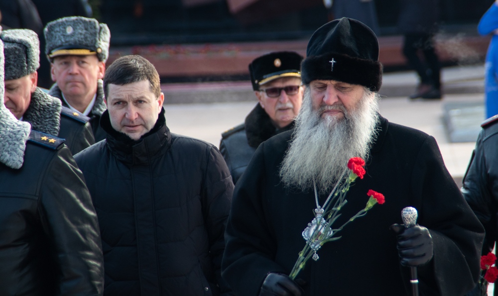 В канун Дня защитника Отечества митрополит Артемий возложил цветы к Вечному огню. 22 февраля 2025 г.