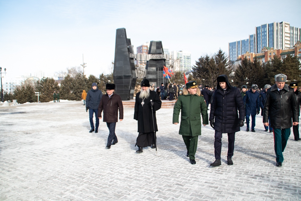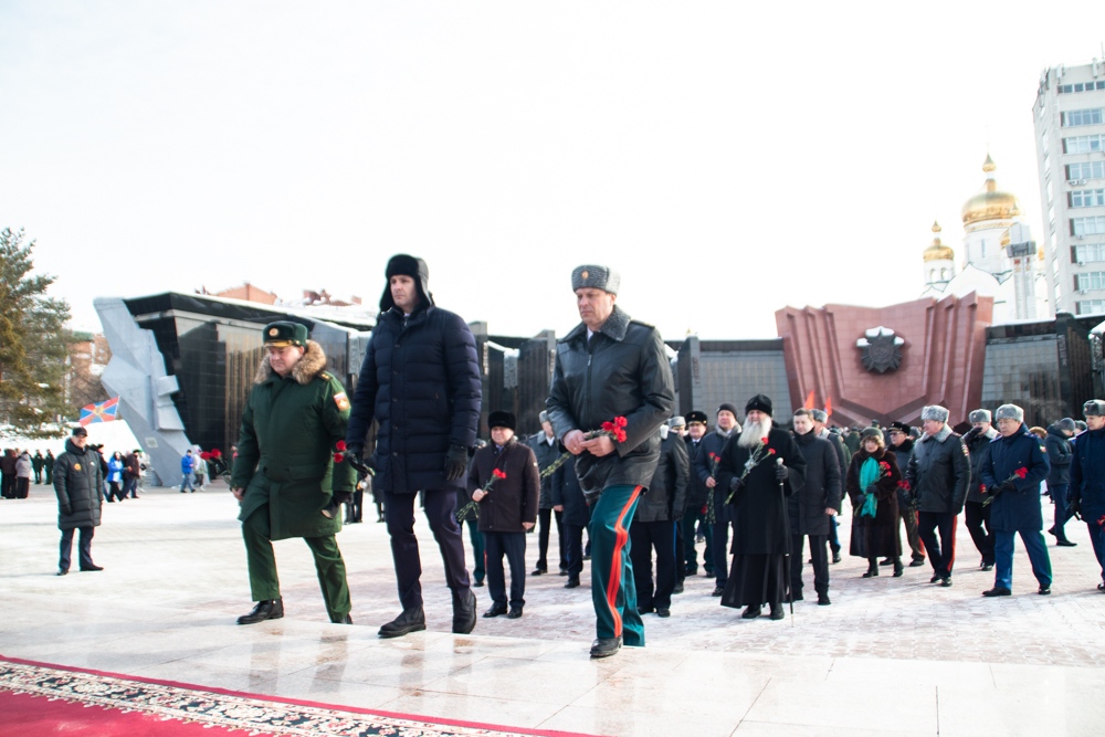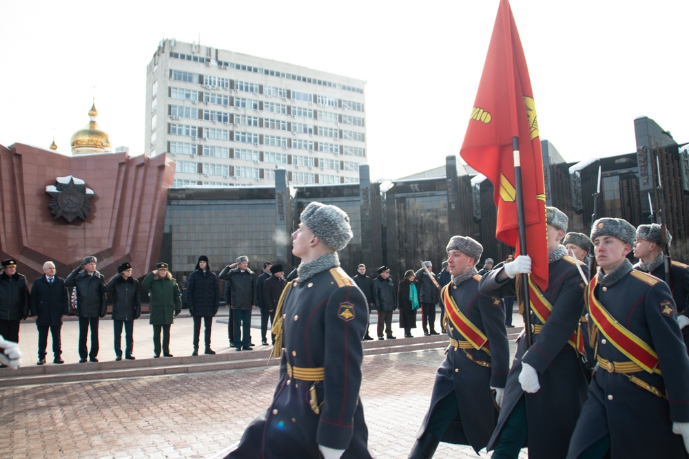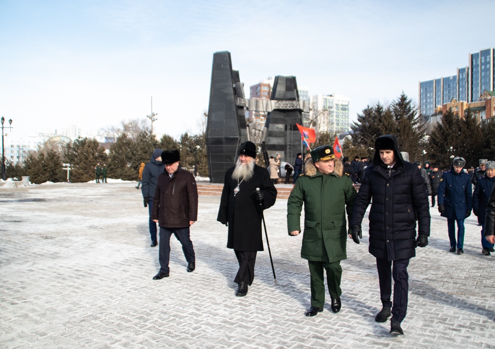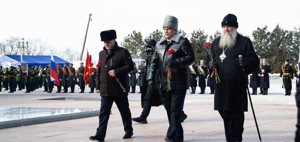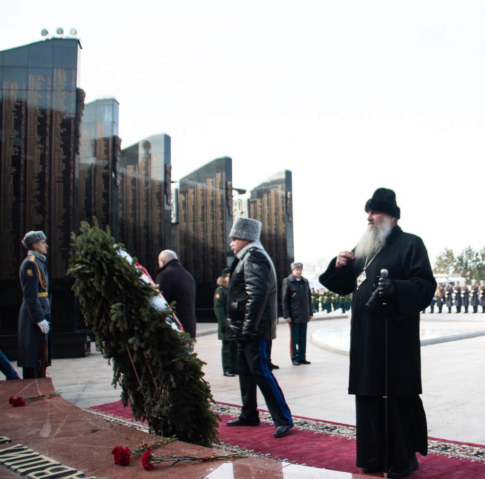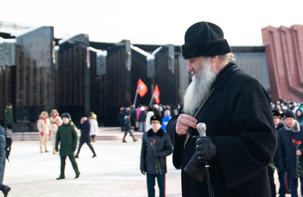 В канун Дня защитника Отечества митрополит Артемий возложил цветы к Вечному огню. 22 февраля 2025 г.