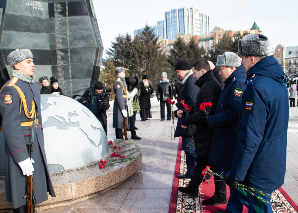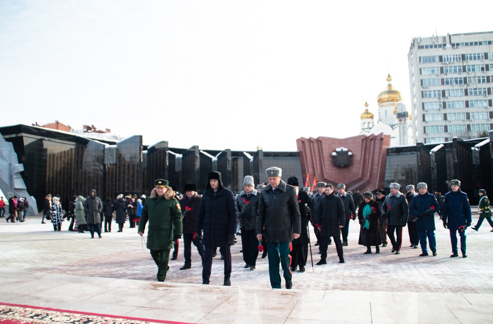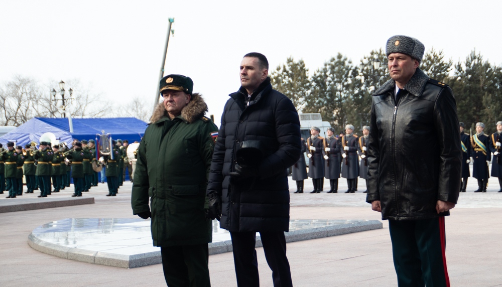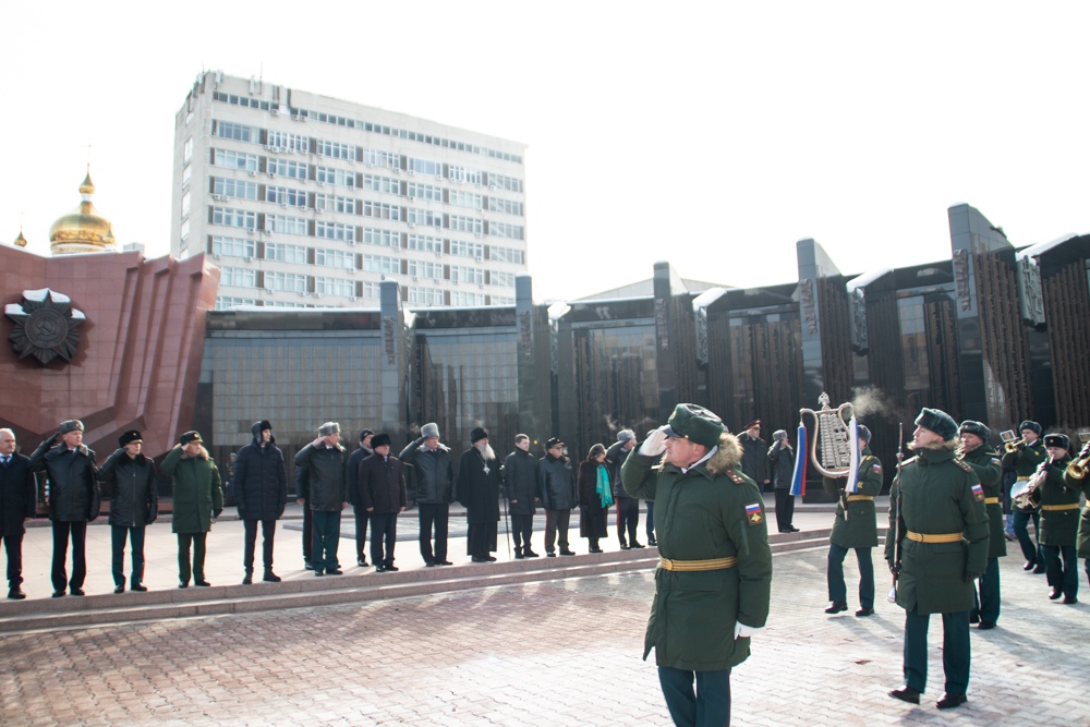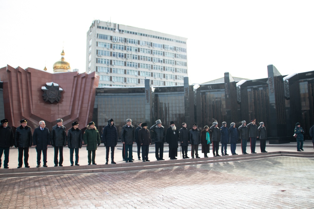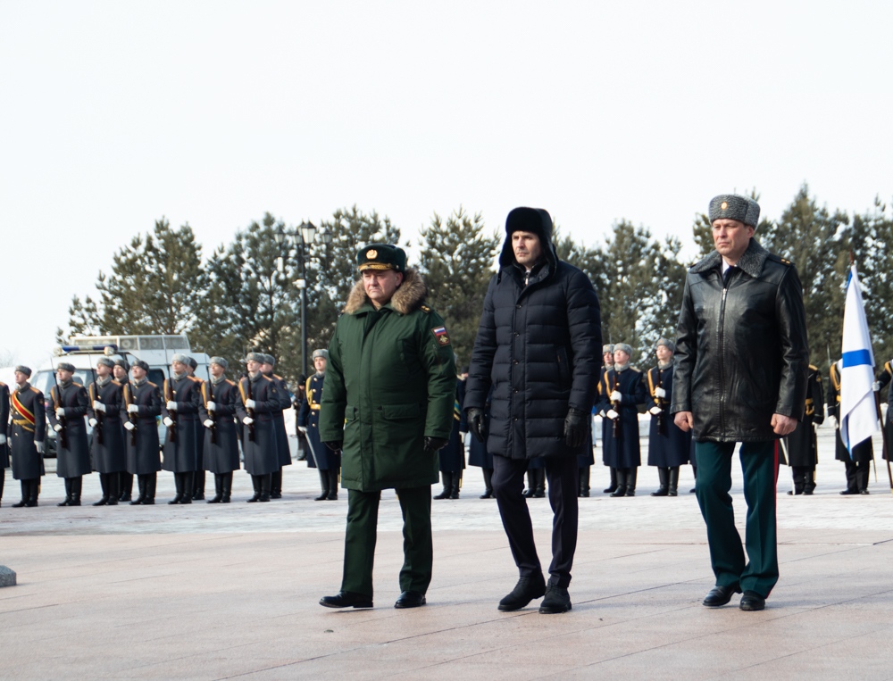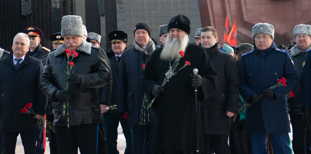В канун Дня защитника Отечества митрополит Артемий возложил цветы к Вечному огню. 22 февраля 2025 г.