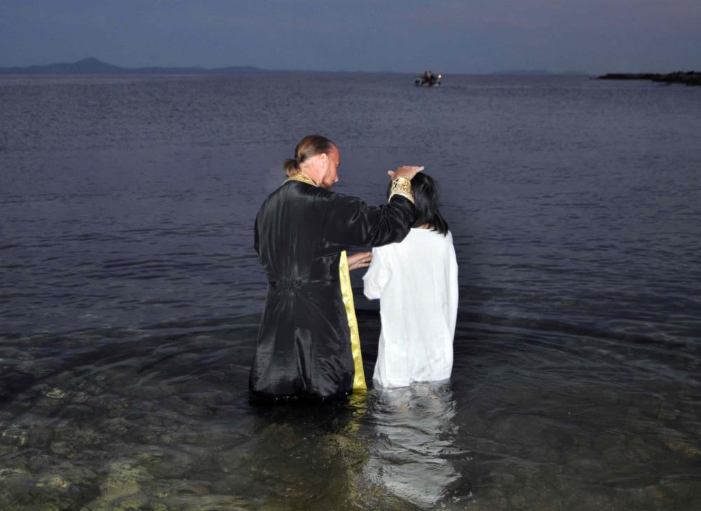 Крещение Сатоми Мидзогути в Японском море. Межепархиальный молодежный слет «Андреевский городок».