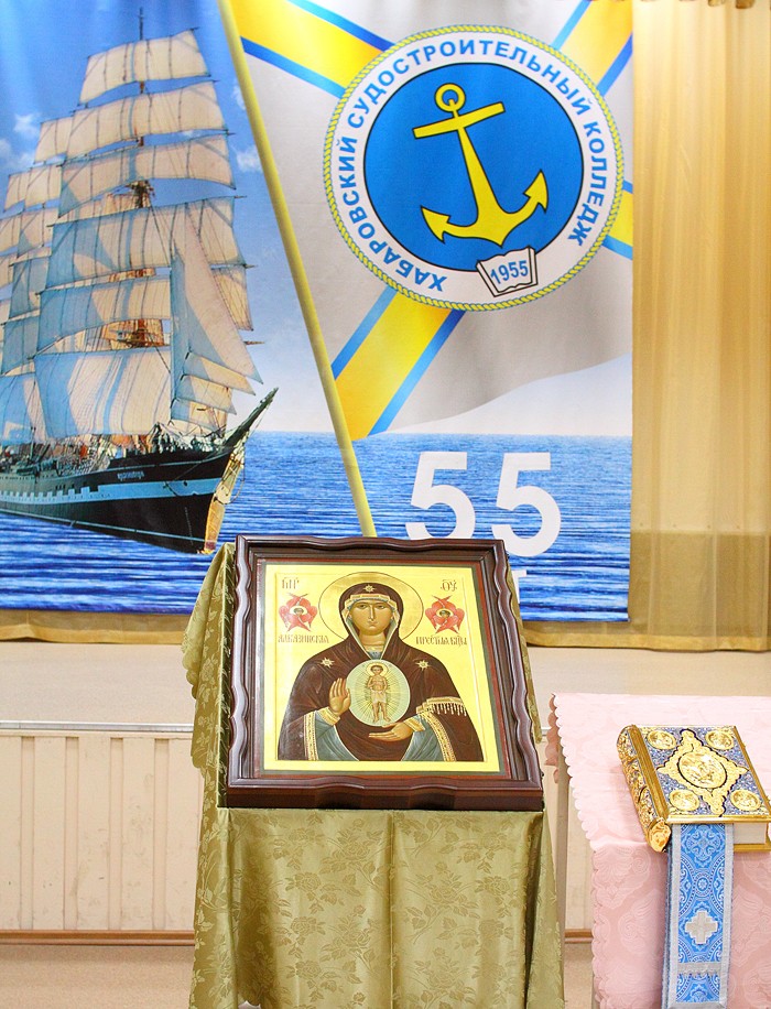 Освящение Албазинской иконы Богородицы в Судостроительном колледже г.Хабаровска. 9 марта 2012 г.