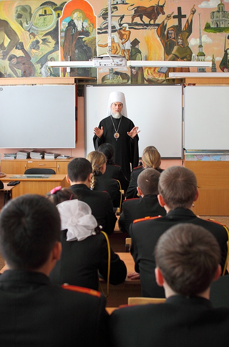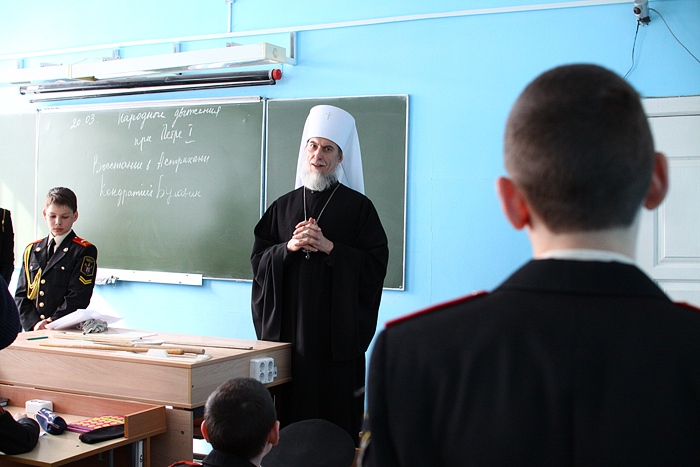 Встреча митрополита Хабаровского и Приамурского Игнатия с учащимися кадетской школы №1 г.Хабаровска. 20 марта 2012 г.